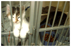 I met Mikey yesterday at the S.P.C.A animal shelter in Gander, Newfoundland. He's an orange, tabby tomcat. He got his name from the "Mikey'll-eat-anything" commercial, because when this cat came to the shelter, he ate anything and everything. You see, Mikey's not your average stray. He didn't show up one morning on someone's doorstep looking for donations. He showed up in a backyard in Glovertown and was more concerned with first-aid than a bowl of milk. When Mikey was brought to the Gander animal shelter, Betty Suley--president of the local S.P.C.A. (Society for the Prevention of Cruelty to Animals)--and her staff assessed his injuries. They found multiple wounds, including gashes on his leg and shoulder indicating he'd been hit by buck shot. There was a ring of bare, scarred skin around his neck that Suley, having seen this type of wound before, immediately recognized as a "snare-induced wound." One of Mikey's eyes were damaged and scratches ran the length of his body. He was sick and dangerously underweight. Unfortunately, Mikey's case is not an isolated incident. In fact, Betty Suley says such cases are commonplace. Cases of animal cruelty not only cover physical abuse; they also include incidents of neglect and abandonment. Suley can rhyme off stories of starving dogs too weak to stand, of kittens thrown down a set of stairs, and of a dog found abandoned and frozen into the ice-covered surface of a lake.