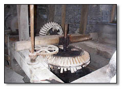 à aubes, qui faisait tourner les meules en pierre. Ces